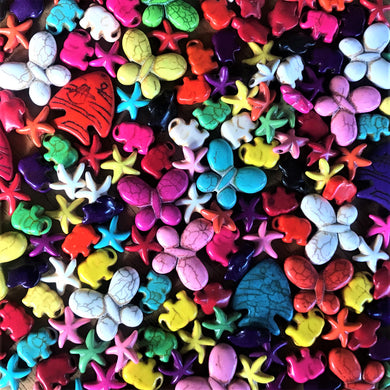 163pcs - 11-40mm Multicoloured Carved Howlite Fish, Butterflies, Elephants & Star Fish [H-4]