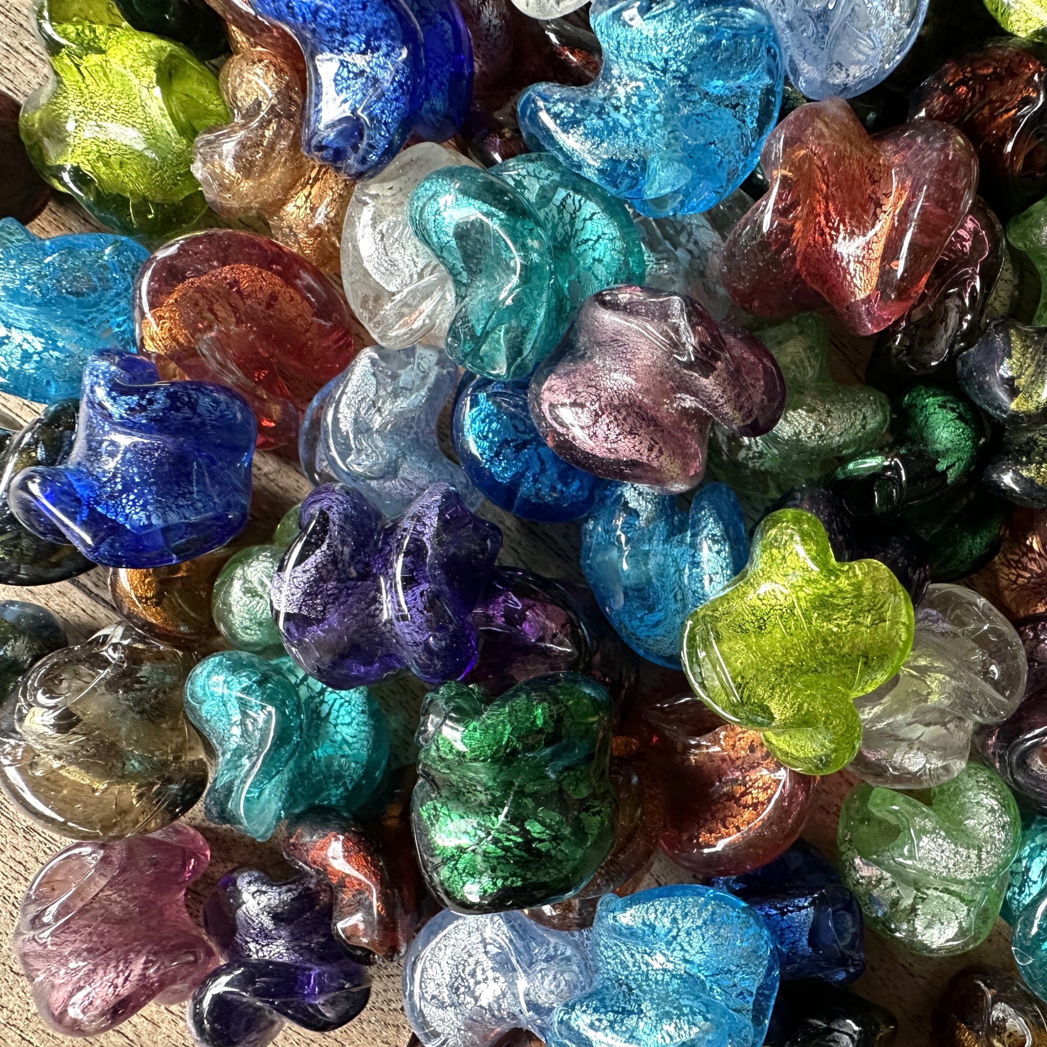 This one we call our ‘Colour Burst’ – which is an all-colour mixture of our popular silver foil 20mm propeller-shaped beads, though they are sometimes referred to as twist beads.